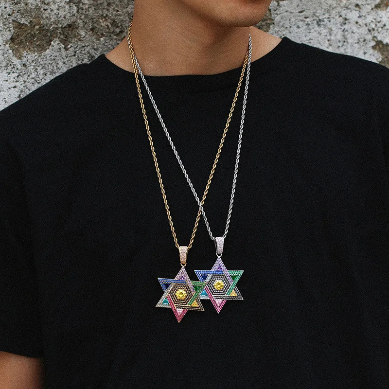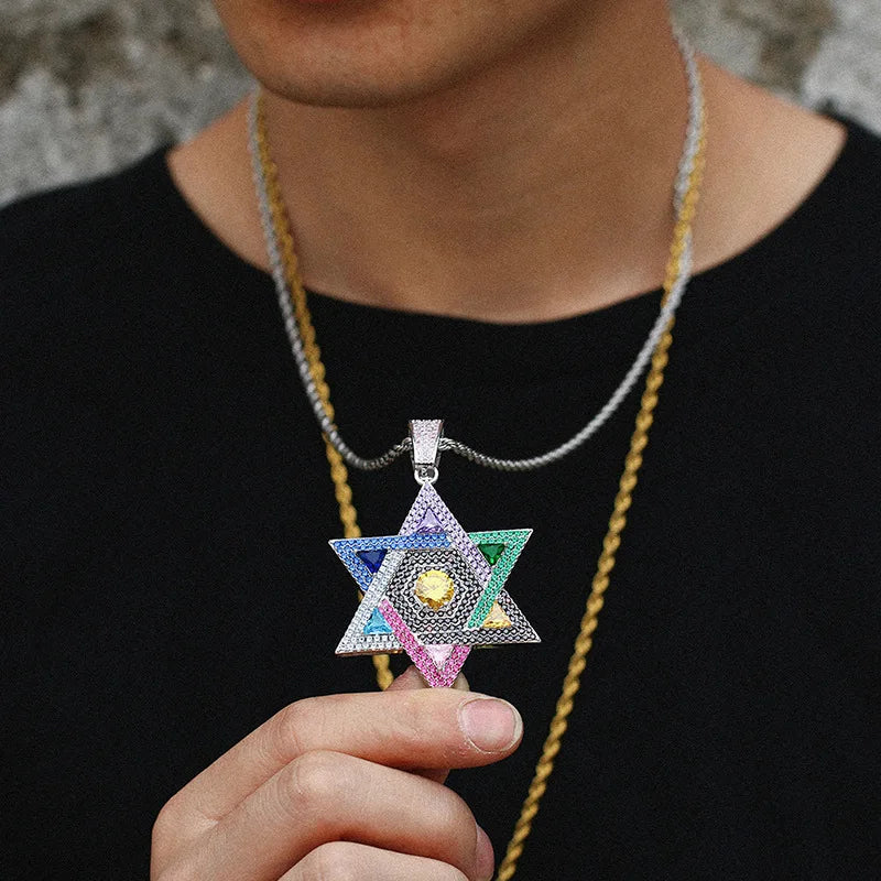 Blingy Iced Out Mehrfarbige Davidstern-Halskette