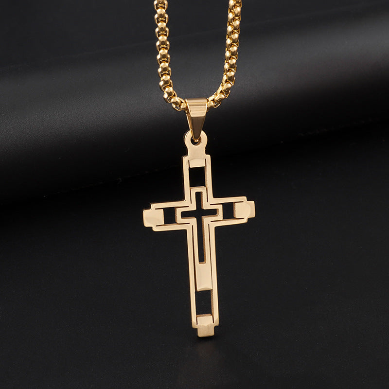 Halskette mit hohlem Kreuzanhänger aus Edelstahl