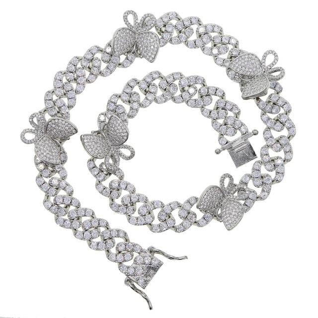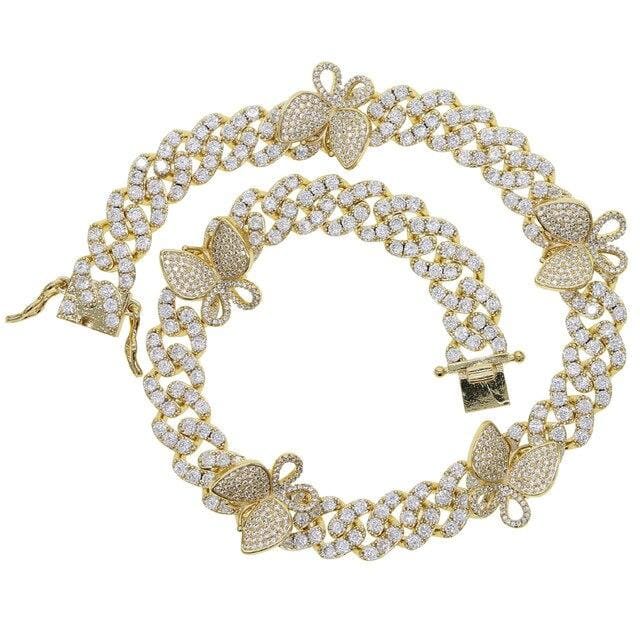 12MM Miami kubansk länkkedja rosa fjärilschoker