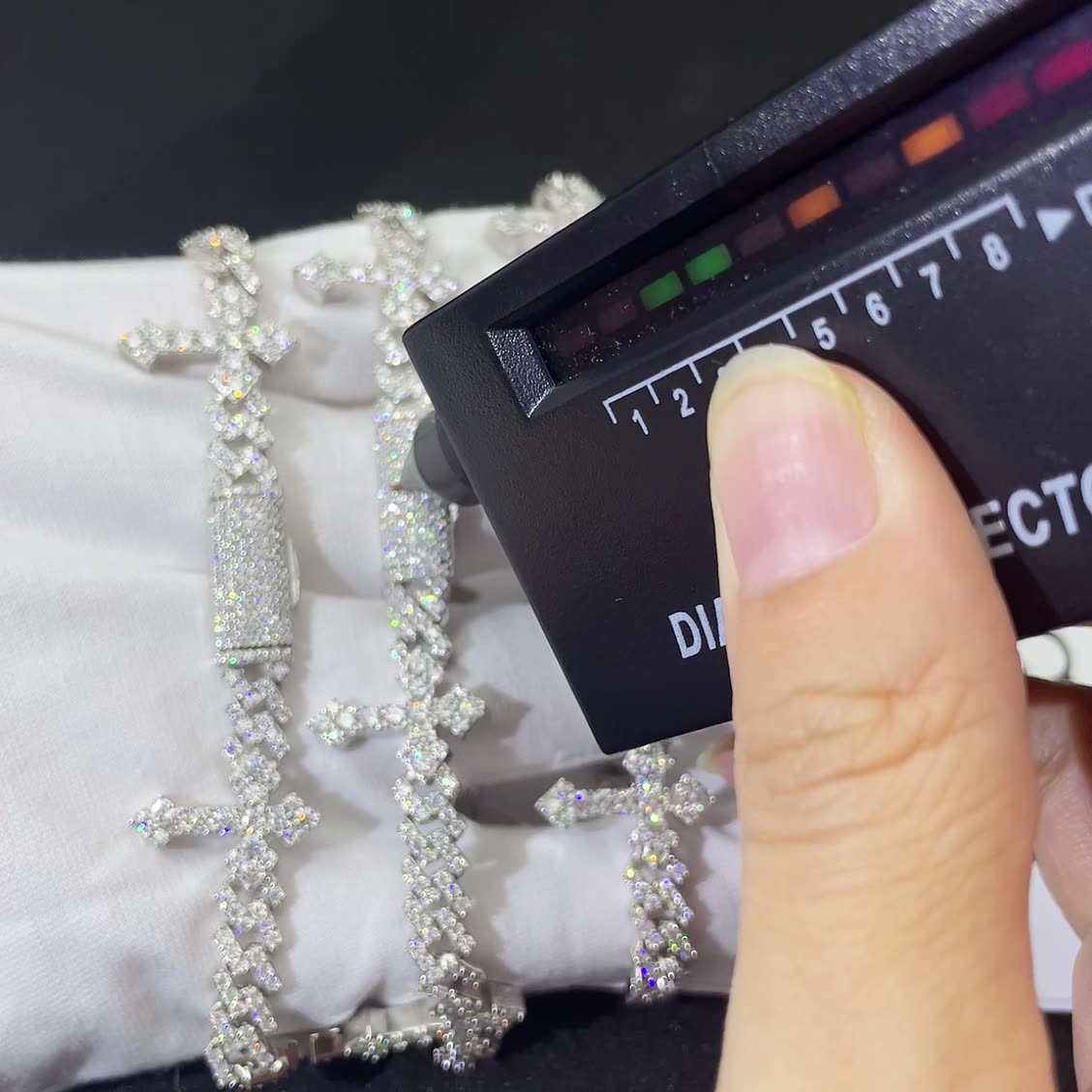 - Erlesener Moissanit-Stein: Verfügt über ein schillerndes Solitär-Moissanit-Kreuz, das eine unübertroffene Brillanz und Feuer bietet, die selbst den feinsten Diamanten Konkurrenz macht.