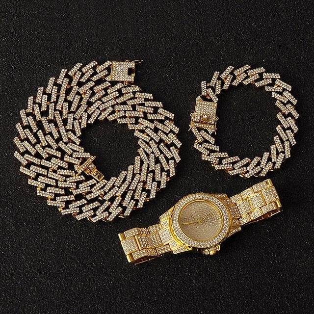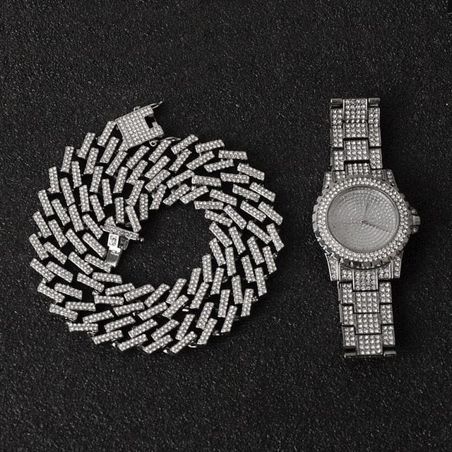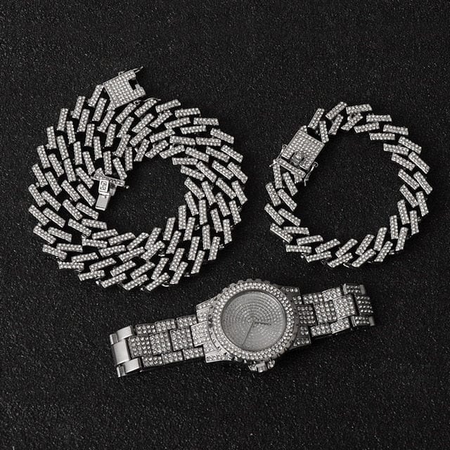 Miami Micro Pave Cuban Chain + Armband + Watch Set