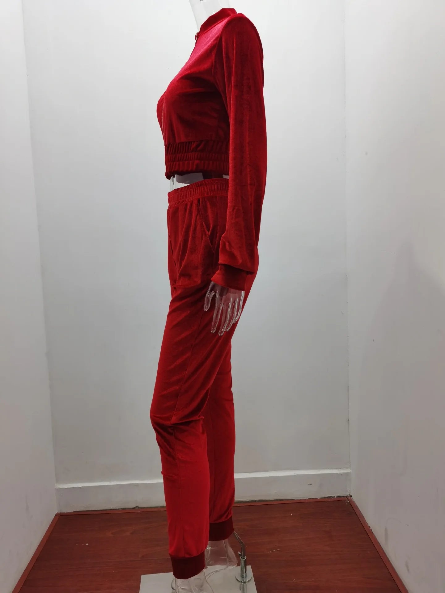 Trainingsanzug mit Kapuze und kurzem Oberteil aus Samt